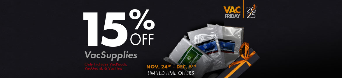 Everything you’ll ever need for your JVR Vac610 – Dual Chamber Vacuum Sealer is here under Vac610 products. Perfect floor unit for high production. Seal integrity is Vac610’s middle name with an EXTRA WIDE 10mm HEAT SEAL! High flow 100m3/h for speed and efficiency. Toolless seal bar removal makes for fast replacement and LESS downtime! We highly recommend ordering a spare gallon of VacOil, Vacuum Pump Oil with your JVR Vac610 and don’t forget the VacPouch, Chamber Vacuum Pouches. If you have any questions about Vac610 products, please contact us, we love talking with our customers!  Email: jvr@jvrinc.com or call (716) 206-2500, M-F 8:30-5 EST. REGISTER YOUR Vac610 TODAY! We provide routine maintenance reminders, sales, and promos straight to our loyal customers.