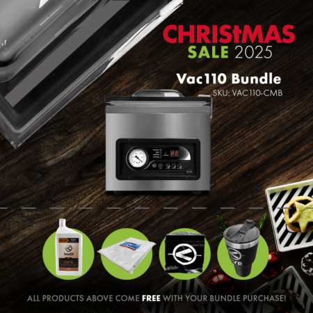 The JVR Vac100 – Christmas Bundle is everything you have been waiting to buy for this coming holiday season! Christmas has the best deals of the entire year! In this year’s Christmas bundle, you can get our JVR Vac100 – chamber vacuum sealer, 8×12 (4 mil) – 100 Pack – VacPouch, VacOil – Quart, JVR Industries RTIC Tumbler, Vac100 Cover, and 1L VacLok Canister!